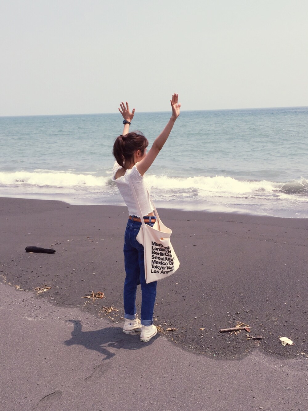 tops g.u pants アメリカンアパレル bag アメリカンアパレル 靴 コンパース あちい。。🏊🏻 でも夏の海最高です☺️!