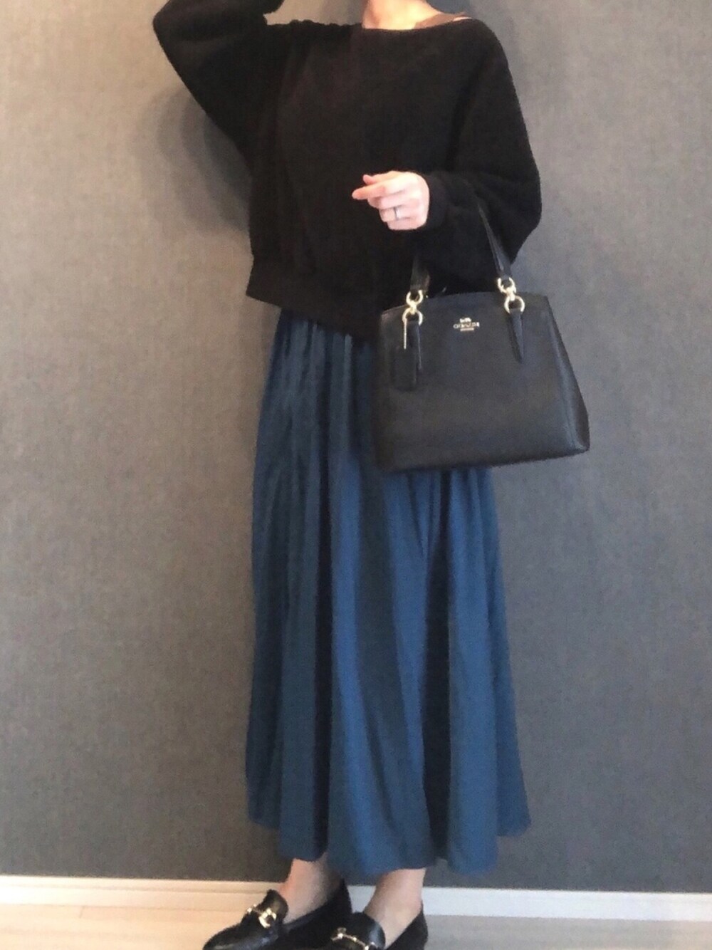 . シックな感じにまとめました☺︎ 黒のベレー帽をかぶって、 リム細めのメガネを合わせてます。 少し幼く見えましたが、好きな組み合わせです★ .