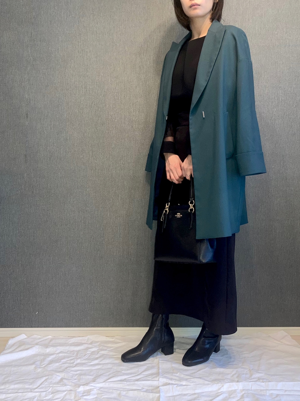 . . ホテルランチコーデ🍽 . 大人っぽく、グリーンジャケットで 差し色🌿 .