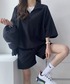 . . ブラックのセットアップ☺︎ 夏らしく、大人でも着れるハーフパンツ .