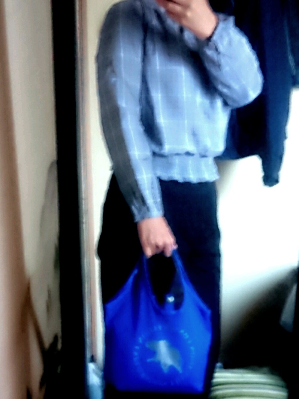 仕事依頼あり ちょろりと働いてきます グレンチェックシャツがショート丈でカーブパンツと相性ヨシ♡