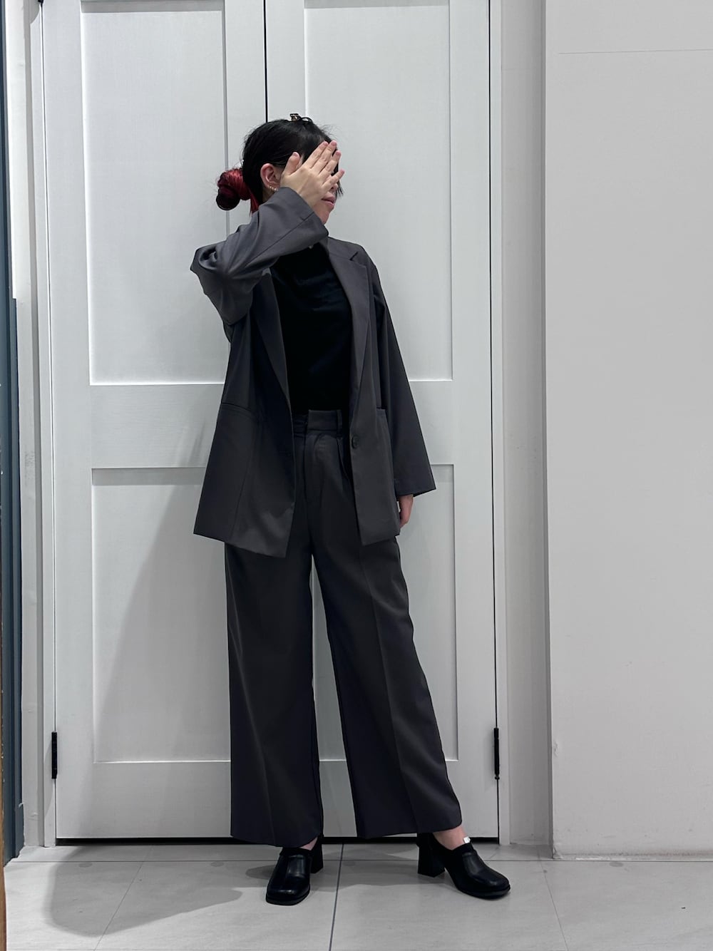 ちゃーままのノーカラージャケット「【セットアップ可】オーバーテーラードジャケット」を使ったコーディネート