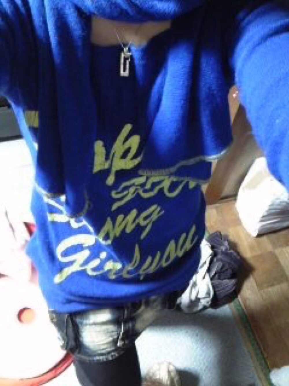 青色がスキな私! トップスとマフラーはセット🤩 デニムスカートはかなりミニで 色合いがすきだっち( 」´0`)」