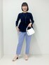 ▶︎ペプラムニット 肩周りがすっきりしていてきれいめコーデにおすすめのニット。ペプラムの切り替えが可愛く、かつ子供っぽくならない上品さもあります。衿開き小さめ、肩もジャストなので小柄な方、華奢な方にも着こなしやすいと思います。また、目が詰まっていて透けにくいです。 伸縮性:あり 素材感、厚さ:しっかり お手入れ : 手洗い可能 ▶︎ダブルクロステーパードパンツ 38サイズ着用。163cmでくるぶしが出る丈。シワになりにくい生地で洗えます。ヒップ周りはゆとりがありラインが出過ぎず、膝下はすっきりと細身。楽ちんきれいめパンツとしてオールシーズン使えます。センタープレスあり。 透け感:なし 裏地:なし 伸縮性:あり 光沢感:なし 生地の厚さ:普通(なめらか) ポケット : あり お手入れ : 手洗い可能