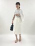 ▶︎ 綿アセラメ配色クルーネックカーディガン アセテート混でさらさらした感触のカーディガン。配色パイピング部分がラメになっていてさりげなく華があります。丈は長すぎず、コンパクトに着られますが腕周りはぴたっとしすぎないので、同素材の半袖ニット以外にも、薄手であれば長袖を重ねたりもできるサイズ感です。 光沢感:少しあり 素材感、厚さ:普通、さらさら お手入れ : 手洗い可能 ▶︎ 綿アセラメランダムリブプルオーバーニット いろんな幅のリブがランダムに入っているので動きが出て程よいフィット感です。長めの半袖でカーディガンを脱いで1枚でも着やすく、上品なイメージ。全面ラメとありますがギラギラせず控えめです。さらっとしたサマーニットです 伸縮性:あり 光沢感:少しあり 素材感、厚さ:普通 お手入れ : 手洗い可能 ▶︎ライトダブルクロスベルト付きタイトスカート ポリウレタン混のとろみのある生地で上品な印象。お仕事にもおすすめです。タイトですが柔らかいシルエットで腰回りのピタピタ感が出にくく、裏地が裾から3cmくらいの所まであるので透けの心配なしです。ウエスト左横にファスナー、前裾中央に約18cmのスリットあり。 裏地:あり 伸縮性:あり 光沢感:なし 素材感、厚さ:普通 ポケット : あり お手入れ : 手洗い可能