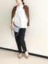 パールボタンブラウス ウエストのボタン部分がタックになり腰位置が高く見える着痩せブラウス。ボタンを外すとAラインシルエットに変えられます。袖のシルエットも柔らかくて可愛い! カーディガン ベーシックなクルーネックにキラキラのボタンがポイント。控えめな小さめボタンなので上品さもあり、とにかく使える1枚です。 パンツは細見えするスリット入り。 ウール風のもっちりした素材です、洗えます! 38サイズ着用しています。ツイードジャケットの投稿で36サイズ着用していますので比べてみて下さい☺️ ウエストゴムも締め付けすぎないのと膝周りもストレッチで伸びが良いです。