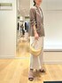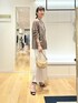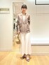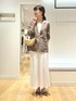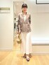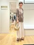 インナーを上下白のワントーンで合わせた 大人配色コーデです🍂 シャツのようにさらっと羽織れるライトジャケットです 秋口まで使える色味、独特のシワ感がおしゃれ見えします 肩幅は少しゆったりして硬さのない印象、 後ろもスリットやタックなどのないフラットなノーデザインのため すっきりスタイルがお好きな方におすすめです 洗える白のナロースカート、38サイズ着用です 揺れる曲線で下半身のラインがきれいに見えます 季節選ばず持っていると頼れるスカート❣️ ウエストは左にファスナー+ゴムで、 内側にひと折りすると4〜5cm短く履けます 裏地ありですが濃い色は少し透けますので淡色のインナーがおすすめです