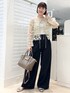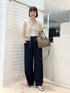 立体的な刺繍がとても華やかなブラウスです✨ ワイドパンツと合わせてラフな大人カジュアルスタイルや ボレロのようにワンピースに羽織ったり、 テイストの幅がとても広くお楽しみいただけます この日は暑かったのでベージュのタンクトップで合わせていますが 寒くなってきたら白い長袖インナーや(リラックスサテンもおすすめ!) タートルニットをインしても見映えます☺️