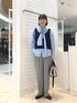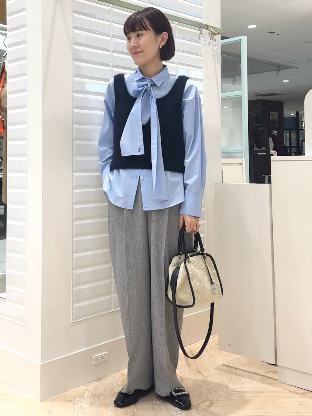 ▶︎ニットビスチェ ふわふわの洗えるニット糸を使ったビスチェです ウエスト周りのリブの締め付けがないのでシャツレイヤードも自然な印象。 (横向きの画像がわかりやすいです) シャツやカットソー、ワンピースの上に重ねるだけで おしゃれ感がアップするアイテムです ▶︎ボウタイシャツ 冬スタイルが明るく見えるシャツです ボウタイの先にはNロゴの刺繍♡ コンパクトなのでボウタイを外してシャツ羽織りとしても使えます ▶︎ウール調イージーワイドパンツ 秋冬らしいウール見えするワイドパンツ。 センタープレスでお仕事もOKのきちんとした雰囲気です。 もちろんカジュアルにも活躍❗️ 涼しくなってからも中にレギンスやタイツを履ける余裕があります。 ウエストはゆったりめですが、中央ファスナーでしっかりと留まり安心。 白のみ裏地付きです