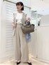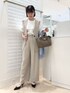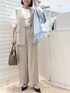 ▶︎ダブルクロスワイドパンツ テロンとしていてきちんと見えするワイドパンツです 裏地あり、淡色でも透けにくくオフィスでも安心。 万能なちょっときれいめワイドパンツお探しの方におすすめです! 画像はベルトを合わせていますが、ベルトなしでもウエストしっかり留まります ▶︎ダブルクロスジレ パンツと同素材でセットアップになるジレベストです 衿元がすっきりしたノーカラーのV開きなのでインナーやアクセを選ばず、 裏地ありでインナーとの擦れも気になりません デニム+ロンTに合わせたりシンプル大人カジュアルにも◎ ▶︎ ダブルクロスブラウス ジレ、パンツと同素材のプルオーバー。 胸元のラッフルは甘すぎず程よいワンポイントになり、 商品名はブラウスですがカットソーのような着心地です 透けにくく、ジレ無しで1枚でも見映えます