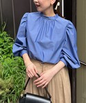yamaguchi(ノーリーズ調布パルコ店)のシャツ/ブラウス「2WAYパール釦パフスリーブブラウス」を使ったコーディネート
