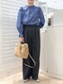 ▶︎ 2WAYパール釦パフスリーブブラウス ちょっとスタンドカラーになっていて甘めきちんとコーデにも使えます ハリはありますが硬くはないので着ていてもごわつかず ビスチェやジャケットなどの下にも着やすい素材です ▶︎ ストレッチツイルワイドパンツ 2タックで、少し外側に広がる角度になっているので ウエスト細見えします✨腰回りも楽な履き心地です 無地はとにかく万能、何でも着回したい時におすすめ! 滑らかで落ち感もあるので腰やヒップの肉を拾いません