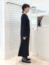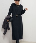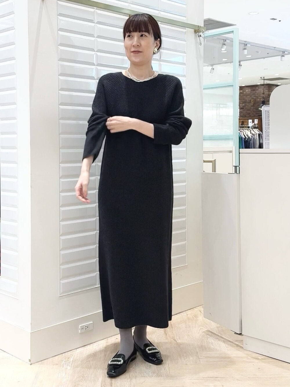 ▶︎ カールカール求心柄ニットワンピース サイズ2 着用(サイズ1と約15cm着丈差あり) 163cmでくるぶし少し上の着丈です 暖かくてすっきりシンプルに着られるワンピースです 衿元は詰まりすぎず開きすぎずの程よいクルーネック。 すとんと落ちてヒップや腰回りのラインを拾いにくいので シルエットを気にせず安心して着られます