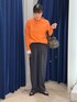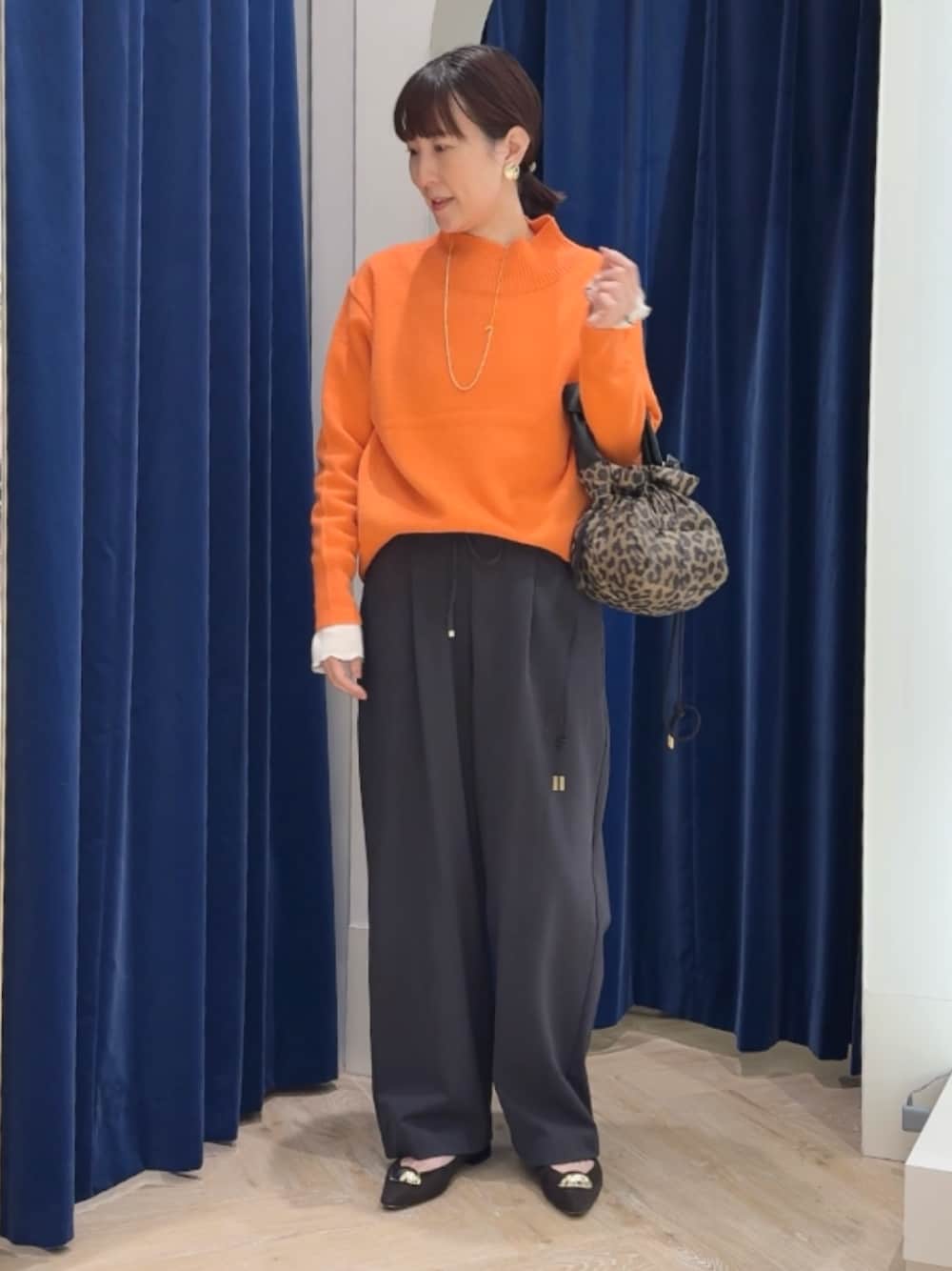パンツは38サイズ着用しています ▶︎カシミヤ混MUSICハイネックプルオーバーニット 柔らかなカシミヤ混のニットです✨ 程よく肉厚(柔らかい為ゴワゴワする様な分厚さは感じにくい)です 保温力が高く寒い時期におすすめ! 少し広め・低めハイネックになっていて、衿元の締め付けも少なく 中にシャツや薄手のハイネックを重ねるアレンジもしやすいです ▶︎ 裏起毛イージーワイドパンツ 裏側は軽めのフリースのようで肌に触れても柔らか暖かいです 表側はつるっとすっきりイメージな表面感のため着膨れみえせず オフィスやきれいめコーデにも合わせやすいです サイズ感はややゆったりめ。 寒い冬に向けて安心感のあるボトムスです