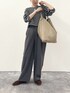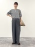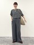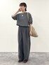 UP ▶︎ ウォッシャブルイージーワイドパンツ 38サイズ着用です。 ウールっぽく見えますが少し光沢のあるイージーパンツです 太さ、長さとも十分にありローファーやスニーカーで合わせても ボリューム負けしないですし、ヒールのブーツで きれいめな着こなしもいける万能パンツです ▶︎ボーダーカットソー ワンサイズ、ショート丈でバランスが可愛いです! 柔らかいですがしっかり肉厚な安心感ある生地 胸元のロゴがアクセなしでもポイントになります