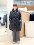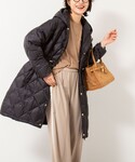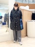 ▶︎ 【TAION/タイオン】別注ミドル丈Aラインフードダウン 毎年人気のTAIONの軽くて暖かいダウンコート。 ウエストを左右のコードできゅっと絞ると、 ドレスコートのようなエレガントなシルエットに。 画像では絞りを緩めに着てみました。 フードは大きすぎず大人っぽい着こなしになります ミドルと言ってもロングに近い膝上丈でとても暖かいです ▶︎ 18G天竺ハイネックプルオーバーニット カーディガンと同素材の長袖ハイネックニット。 衿は折り返さなくても着られる高さで、首にフィットしすぎず 自然なシルエットです ハイゲージできれいめな見た目、毛玉になりにくい加工もされて デイリーに安心してお使いいただけます ▶︎裏起毛イージーワイドパンツ 38サイズ着用しています 裏側の、肌にあたる部分がふわっと起毛素材で温かいです シルエットは太すぎず、通勤コーデにも良さそう。 ウエストがぐるっと一周ゴムで楽な履き心地です 持っていると寒い冬に心強いパンツです!