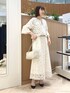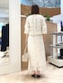 ▶︎ 【KIRYU】ウォッシャブルラメジャガードブルゾン ファスナーを少し開けて、中のタンクトップを見せて着ています 見た目よりも実際に着ると柔らかいです 袖口のゴムもちゃんと留まりますがキツくなく、 全身の印象に合わせて長さバランスの調整がしやすいです デニムと合わせたり大人可愛くカジュアルダウンから、 フォーマルや特別な日に着ていただくのも華がありおすすめです 同素材のスカート同様、手洗い可能です ▶︎サテン×ラメベア天2WAYタンクトップ 38サイズ着用、ラメ側を前に着ています ちらっと見せて着たい時にも見映える、1年中使えるインナーです ラメ側・サテン側どちらも硬さはなく滑らかです 肩幅が太くて衿元も開きすぎず、着ていて安心感あるデザインです ▶︎ 【KIRYU】ウォッシャブルラメジャガードスカート ワンサイズで、ウエストの紐は絞らずに履いています 163cmで、裏地も膝下まであるので透けが強すぎず 安心して履きやすいです ヒップ周りもラインが出にくいサイズ感です 見た目よりも実際に着ると柔らかくて大人可愛くカジュアルダウンも⭕️ もちろんフォーマルや特別な日に着ていただくのも華がありおすすめです 手洗い可能ですので暖かくなり少し汗ばむ季節まで長くお使いいただけます