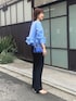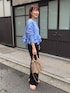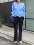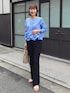 ※スウェードのバッグと青いバッグ2種類持っていますのでぜひ両方ともご覧ください😊 ▶︎ ペプラムフリル2WAYブラウス ウエスト周りのフリルが可愛いブラウスです 前後着用できますが、ボタンを前にしてシャツ風に着てみました 肩、腕周りは見た目の雰囲気よりも余裕があり、 生地も厚すぎないのでさらりと着やすかったです どの角度からでも華のある、1枚でおしゃれ完成ブラウスです😊 ▶︎ カットジョーゼットスリットパンツ 38サイズ着用 とにかく細見えパンツ! ジャージのような履き心地のとても良いパンツで、 すらっとカッコ良いシルエットなのにとてもリラックスできます 後ろ足首のスリットもポイントです