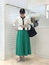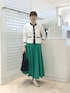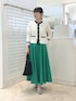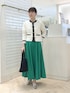 ▶︎ ビオグレースミラノリブジャケット ワンサイズ。 洗えるきちんと見えニットジャケットです。 コンパクトでカーディガンとしても着用いただけます 裾にリブがないのでフィットしすぎずボトムを選びません ミラノリブは表面がでこぼこせずフラットなので毛玉が出来にくく、 普段使いにもおすすめです ▶︎ ウォッシャブルフレアマキシスカート 38サイズ着用 少しハリのある、広がりがきれいなスカートです グリーンが鮮やかでコーディネートに華が出ます🌿 163cmでくるぶしまでくる充分な着丈で足元が見えすぎないので、 スニーカーカジュアルコーデにも着回せます