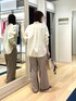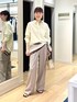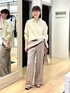 スカーフは腰に巻いたりバッグに結んだり 使いやすいサイズです❗️ ▶︎ ウォッシャブルOX2WAYシャツ 春らしいカラーのシャツです ノーリーズでは定番の、内側ボタンで前の着丈を短く出来る2way使用です オックスのハリはありつつも全然硬く感じず着心地が良いので 寒いうちはニットのインナーに。 暖かくなってからもタンクトップにさらっと羽織って、など 着こなしの幅を広く使えるデザインです ▶︎ドライシャークタックワイドパンツ 38サイズ着用 ややゆったりめなウエスト、股下丈も充分にあり スニーカーコーデにも合います ドライタッチですが程よく肉厚なので肌寒い日でも着られます 同素材ジャケットとセットで着用していただくと ハンサムなテイストのパンツスーツになります