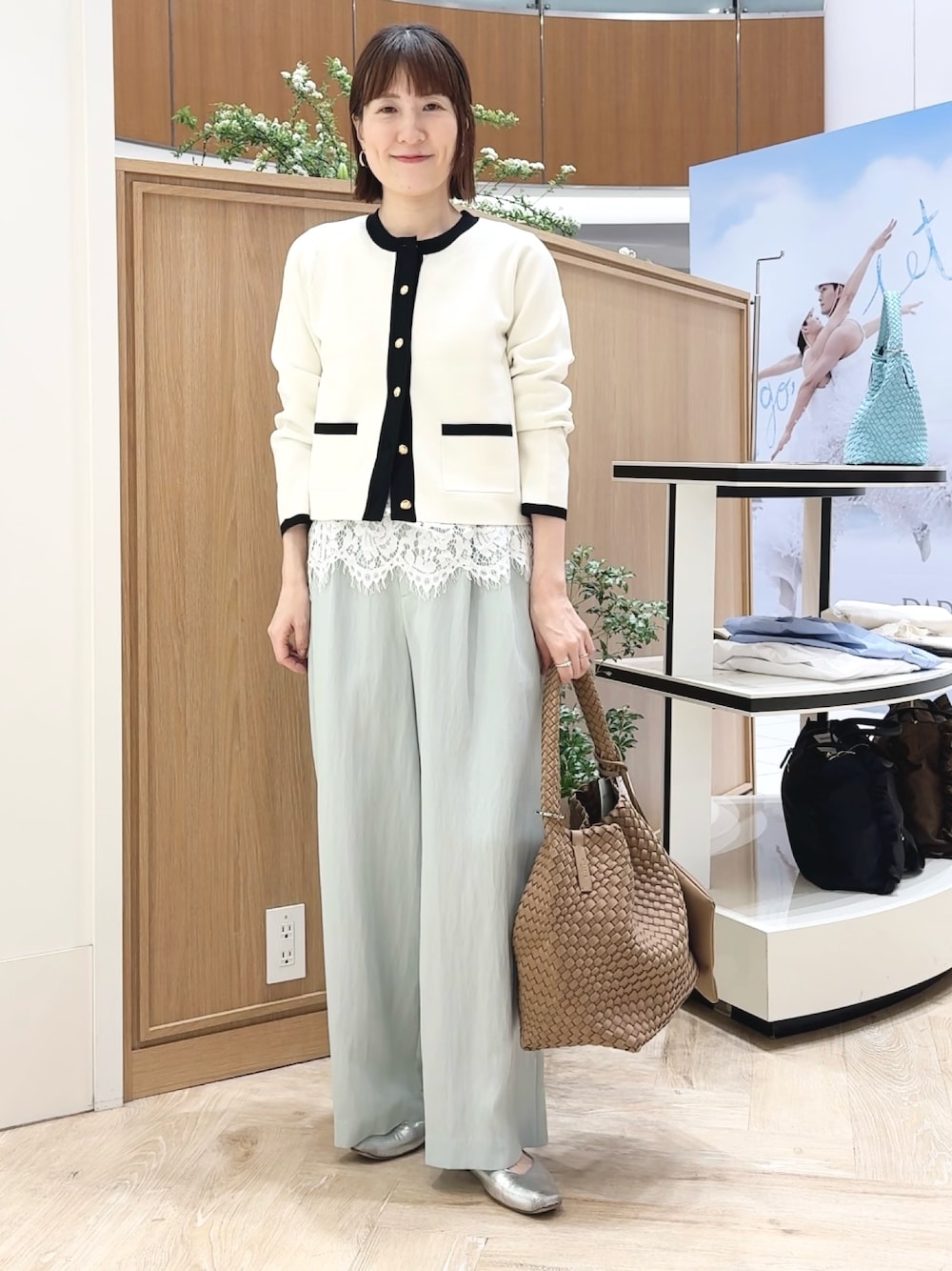 レースキャミソールのレイヤードあり/なし両方載せています! ▶︎ ビオグレースミラノリブジャケット ワンサイズ。 洗えるきちんと見えニットジャケットです。 コンパクトでカーディガンとしても着用いただけます 裾にリブがないのでフィットしすぎずボトムを選びません ミラノリブは表面がでこぼこせずフラットなので毛玉が出来にくく、 普段使いにもおすすめです ▶︎ ウォッシャブルレースビスチェ 今年のトレンド、レースのレイヤードにオススメの キャミソール型ビスチェです 総レースの贅沢なデザインなので、インナー使いだけでなく シャツやロンT、寒い日はタートルの上などにレイヤードして、 主役としても使っていただきたいです ▶︎ ウォッシャブルセルロースワイドパンツ 38サイズ着用です サラサラした気持ち良い生地のワイドパンツです 落ち感がありお尻周りの肉を拾わずに履けるので 夏の暑くなる時期にも長く使えそう! サイズ感に余裕があるので、涼しい日には中にレギンスを履いたり 調節しながらシーズンレス着用できます