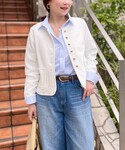 ▶︎ ラッセルリングカーデジャケット ワンサイズです コンパクトな見た目なのに腕周りは柔らかく着心地が良くて、 二の腕部分も中に長袖を重ねてもごわつかないです 小柄な身長の方でも着られている感が出ない、優秀なシルエットです ボタンの配置が凝っていて、幅狭めに上の方に付いていて 下は抜け感がでるバランスなので 羽織るだけで重心が上がって見えてスタイルアップします✨ ▶︎カップ付ワンショルタンクトップ ワンサイズ、ピタッとフィット感のあるタンクトップです 胸元もゆるく開かずにとても安心感があります 前が斜めに(左右アシンメトリーに)なっているので シャツやジャケットから見せてもおしゃれです オフショルダーなど肩を出したいトップスにも◎ ▶︎ ウォッシャブルダブルサテンナロースカート 38サイズ着用 ツヤのきれいな生地を使用したなめらかなロングスカートです 広がりすぎないすっきりシルエットで腰回りや下半身がすっきり細見えします✨ ウエストにゴムが通っていて楽な履き心地で ポリエステルのため水洗い可、しわにもなりにくく 大人カジュアルなコーデにもおすすめです