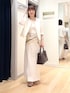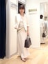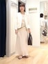 ▶︎ ラッセルリングカーデジャケット ワンサイズです コンパクトな見た目なのに腕周りは柔らかく着心地が良くて、 二の腕部分も中に長袖を重ねてもごわつかないです 小柄な身長の方でも着られている感が出ない、優秀なシルエットです ボタンの配置が凝っていて、幅狭めに上の方に付いていて 下は抜け感がでるバランスなので 羽織るだけで重心が上がって見えてスタイルアップします✨ ▶︎カップ付ワンショルタンクトップ ワンサイズ、ピタッとフィット感のあるタンクトップです 胸元もゆるく開かずにとても安心感があります 前が斜めに(左右アシンメトリーに)なっているので シャツやジャケットから見せてもおしゃれです オフショルダーなど肩を出したいトップスにも◎ ▶︎ ウォッシャブルダブルサテンナロースカート 38サイズ着用 ツヤのきれいな生地を使用したなめらかなロングスカートです 広がりすぎないすっきりシルエットで腰回りや下半身がすっきり細見えします✨ ウエストにゴムが通っていて楽な履き心地で ポリエステルのため水洗い可、しわにもなりにくく 大人カジュアルなコーデにもおすすめです