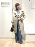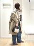 ▶︎ 【TICCA/ティッカ】テントトレンチコート TBFS-161 肩周りや背中のフォルムが可愛い💕コートです 163cmで膝ちょうどくらいの、スカート・パンツボトムを選ばない丈です 袖口を折り返して着てみました。 アームに余裕があるので肌寒い日でも中にレイヤード出来て、 気候により調節がしやすいです 撥水加工で機能性も優れたアウターです ▶︎ イレギュラーネックオフショルプルオーバー 1枚で着映えするデザインニットです 肩を出さずにも着られてデニムコーデなどきれいめカジュアルにも◎ 身頃はコンパクトなサイズ感で、衿元のボリュームとバランスか取れすっきりまとまります ▶︎ 【upper hights/アッパーハイツ】THE TWINS 24サイズ着用 普段ノーリーズのボトムは38サイズ着用です。 ウエストは23サイズがちょうど良いくらいでしたが、 ゆるっと履くためにあえて24サイズでゆったり着ています ウエストのデザインが存在感あり、普通のデニムの着こなしと差がつきます