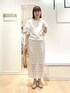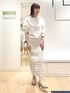 ▶︎ ボートネックライトダンボールプルオーバー 着心地が良く柔らかなトップスです 透けにくくて淡色でも安心して着られる、肉感のある生地です 着丈が長すぎない所も良く、身長問わずコーデしやすいです ウエストインなど考えずにぱっと着るだけで良いバランスに。 袖口は少し上げて手首を出して着るとさらにスタイルアップします✨ ▶︎ ストレッチレースタイトスカート ワンサイズです タイトシルエットですがびよーんと伸びるストレッチ性の高いレース素材で楽です! レースも凹凸がありぺったりしないので 高見えしつつ、ヒップ周りやインナーのラインが目立たない安心の履き心地です 裏地は膝くらいまで、過度に足元が透けない長さ。 ウエストは見た目の雰囲気よりもゆったりとしています (ゆるい場合はウエスト内側の紐を絞って調整可能です)