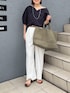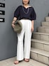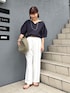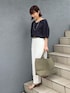 メッシュバッグは新色のカーキです! ▶︎ ハートネックカットソー ボートネックともVネックとも違った雰囲気で着られる、 デコルテや首元のきれいなカットソーです 開きがあるのに上品な印象なので、通勤ジャケットのインナーにもおすすめです 5分〜6分袖で肘も隠れて、二の腕カバーにも◎ きれいめな印象ですが大人カジュアルにも着回しが出来ます ▶︎ ウォッシャブルイージーツイルセミワイドパンツ 38サイズ着用 毎年大人気のワイドパンツ!さらっと落ち感があります とにかくイージーケア(お手入れが楽)で、お洗濯後 もノーアイロンで着用できます ウエストは後ろがゴムで、ファスナーなしのすぽんと履けるイージータイプです さらさらで暑い日でも着心地が良いので、春夏の通勤着にもおすすめです