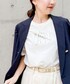 ジャケットは肩掛けと袖を通した所両方載せています! ▶︎ ブリーザブルシャンブレーダブルジャケット 38サイズ着用 とても軽くて夏に着心地の良いジャケットです 手洗い可能です! ボタンが多くないので見た目すっきりした印象です 抗ピル(ピリング)加工で毛羽立ちが起きにくいので ばさっとラフに羽織りたい時にもおすすめです ▶︎ ブリーザブルシャンブレーセミワイドパンツ 38サイズ着用 同素材のジャケットとセットアップにもなります セミワイドですが少しフレアで膝上からすっきり細見えする きれいめな印象のパンツです 光沢はあまりないのでカジュアルにも着回せます ▶︎ オーバーサイズロゴTシャツ ワンサイズ、ハイゲージで肌触りの良いなめらかなTシャツ。 ジャケットやシャツのインナーにして ロゴをポイントにコーディネートするのがおすすめです もちろん夏は羽織なしで1枚で着てもロゴの形が可愛いです♡ オーバーサイズとありますが、だぼだぼではなく程よいゆとりなので ゆるすぎるトップスが苦手な方にもぜひ試していただきたいです