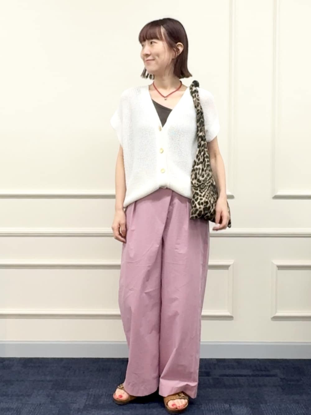 ▶︎ ウォッシャブル撥水ワイドラップパンツ 履き心地がシャカシャカと夏らしい素材のワイドパンツ。 ラップタイプでお腹部分がぱつんとせず動きがでるデザインなので 履くだけで少しこなれた雰囲気が出せます ゆったりめなのでTシャツやぺたんこサンダルで ラフに気軽に着たい日におすすめです ピンク濃いめの色味で甘くならずに合わせられます ▶︎ ペーパーヤーン2WAYベスト 毎年はずさない、人気のニットです ゆるっとしたシルエット、脇も程よく開きがあるので 長袖シャツを中にレイヤードするのもおすすめ。 ざくっとしたしっかりしたニットで着ていて安心感もあります ノースリではなく肩は隠れます 裾がパイピングで配色になっている所もかわいい! ▶︎ プレミアムテレコアシメ2WAYタンク ワンサイズ、フィットしすぎず程よく楽な着心地のインナーです (昨年のものを持っていますが、今年は少しだけタイトになりました) アシンメトリーでななめのラインでデコルテ部分が綺麗に見えて シンプルコーデもちょっと変化が付けられます 白でも透けにくい所も良く、分厚すぎない程よい安心感ある厚さです #ナチュラル #平均身長