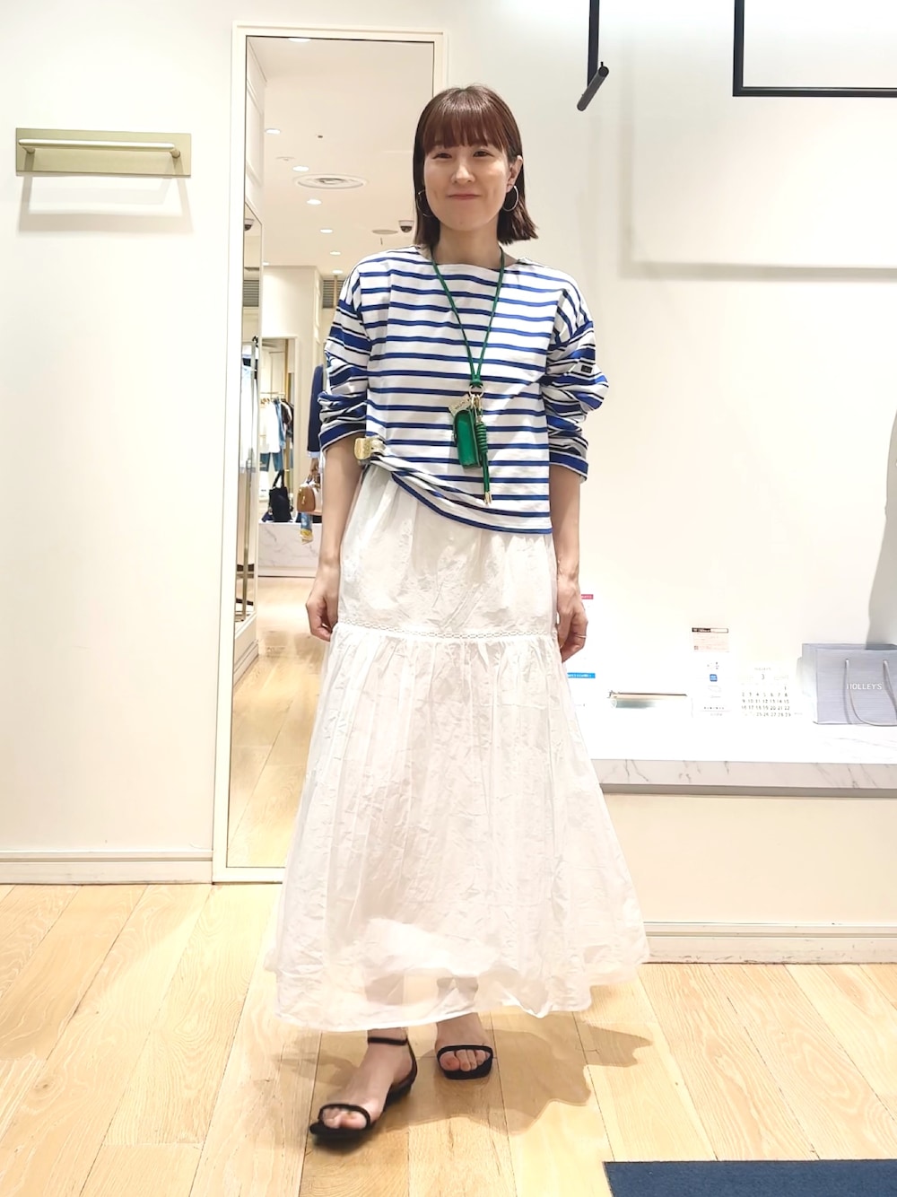ヘアクリップはロンTの裾につけてアレンジしています❣️ ▶︎【Le minor/ルミノア】ボーダーロンT ややゆったりめ、丈は長すぎずコーディネートしやすい長袖カットソー。 柔らかな素材なので気楽なリラックスコーデ気分の日におすすめです ある程度の厚みはありますので透けずに着ていただけます 袖と身頃のボーダーピッチが違う所が可愛いポイント! 普通のボーダーロンTと差がつきおしゃれ見えします ▶︎ 【MARILYN MOON/マリリーンムーン】 sheer starched cotton lace tieredワンピース シアー素材の軽さと、ハリのある生地とのバランスが可愛い キャミソール型ワンピです キャミの肩紐は結んで長さ調節が可能なので 小柄な方でも裾をカット修理せず着用いただけます のり付け加工でパリッとしていて、着用や手洗いを繰り返して 馴染んでくると少しボリュームが抑えられます