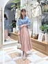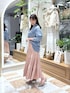 《シャツ》 シアー素材のデニムシャツ! とても軽くて柔らかい生地感で着心地◎ ボタンを留めればカシュクールにも出来て 内側のボタンを留めればイン風に^^ 羽織りでも1枚でも着回し万能なのでマストアイテムです♡ 《スカート》 お肌馴染みがよく大人上品なくすみピンクカラー! ウエストゴムで楽ちんなのに 腰回りが張らず細見えします! ウエストは同色同素材なので インしてもゴム感が気になりにくいです♡ シワになりにくいのでお仕事や旅行にもおすすめ^^
