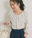 mami(La boutique BonBon 有楽町マルイ店)のシャツ/ブラウス「【最強愛され】ギャザーフリルリボンドットブラウス」を使ったコーディネート
