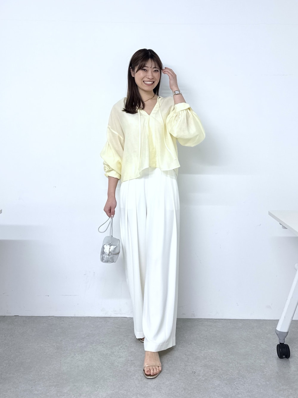 mami(La boutique BonBon 有楽町マルイ店)のシャツ/ブラウス「【再販決定!】リボンボリュームスリーブシアーブラウス」を使ったコーディネート