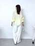 《ブラウス》 程よい透け感のシアーブラウス! お袖のボリューム感が大人可愛い^^ インしなくてもバランスのいい着丈です◎ 後ろ下がりなのでヒップをカバー出来るのもポイントです♪ 《パンツ》 2タックで腰回りカバー! とても柔らかい素材なので履き心地抜群で、 軽さもポイントです^^ お洗濯可能で速乾性があるのも嬉しい◎ ウエスト周りの窮屈感はないですが、 スッキリ見せしてくれる優秀パンツです! これなら色違い購入もあり♪