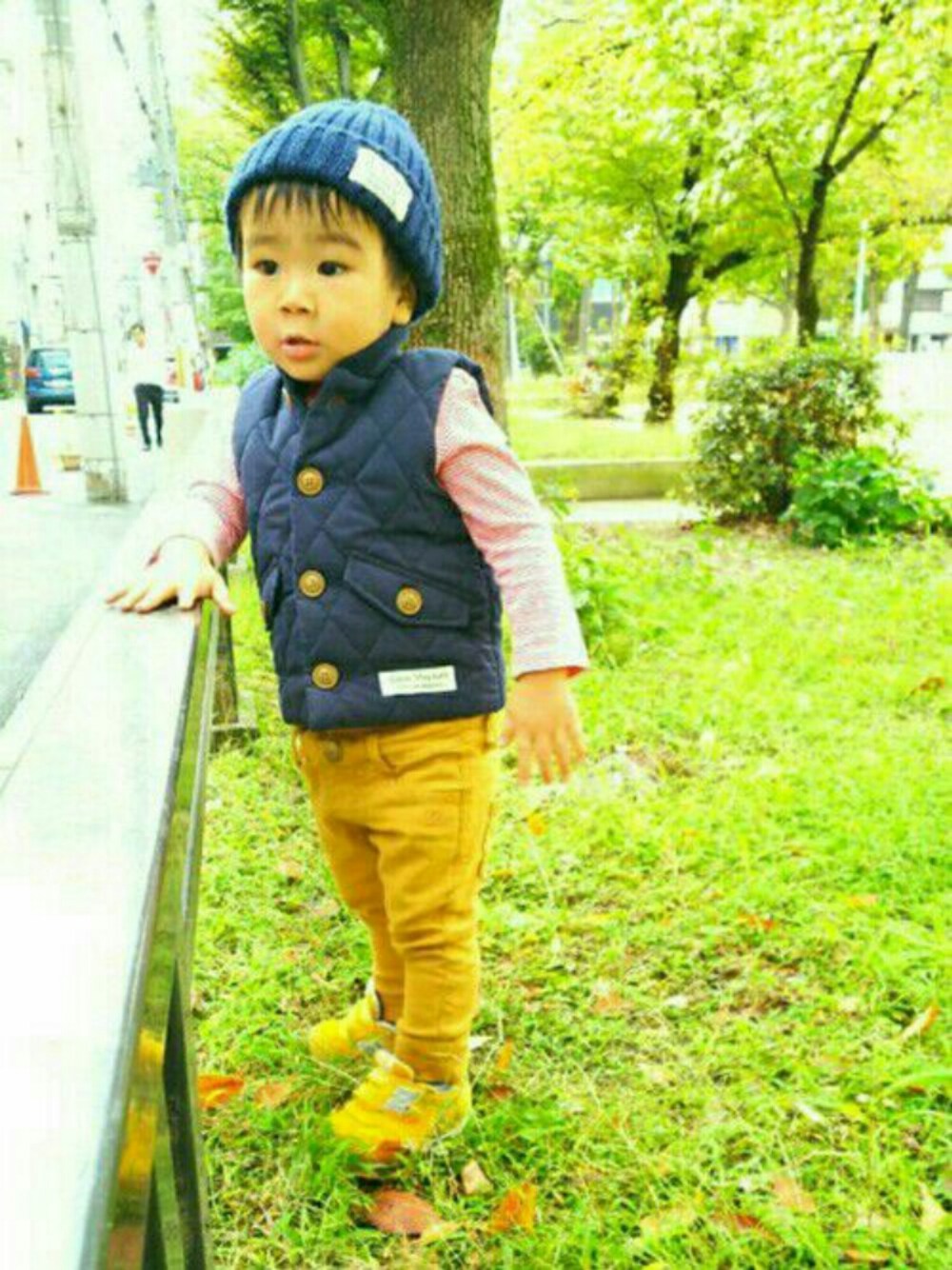 身長85cm 体重12kg 1歳8ヶ月 お外で遊ぶとまだまだあつくなるので調節できるようにベストで(^^) ロンティー80cm ベスト80cm パンツ90cm 靴14cm New Balanceの靴は前がしっかり開いて小さい子供にも履かせやすいのでおすすめです✨