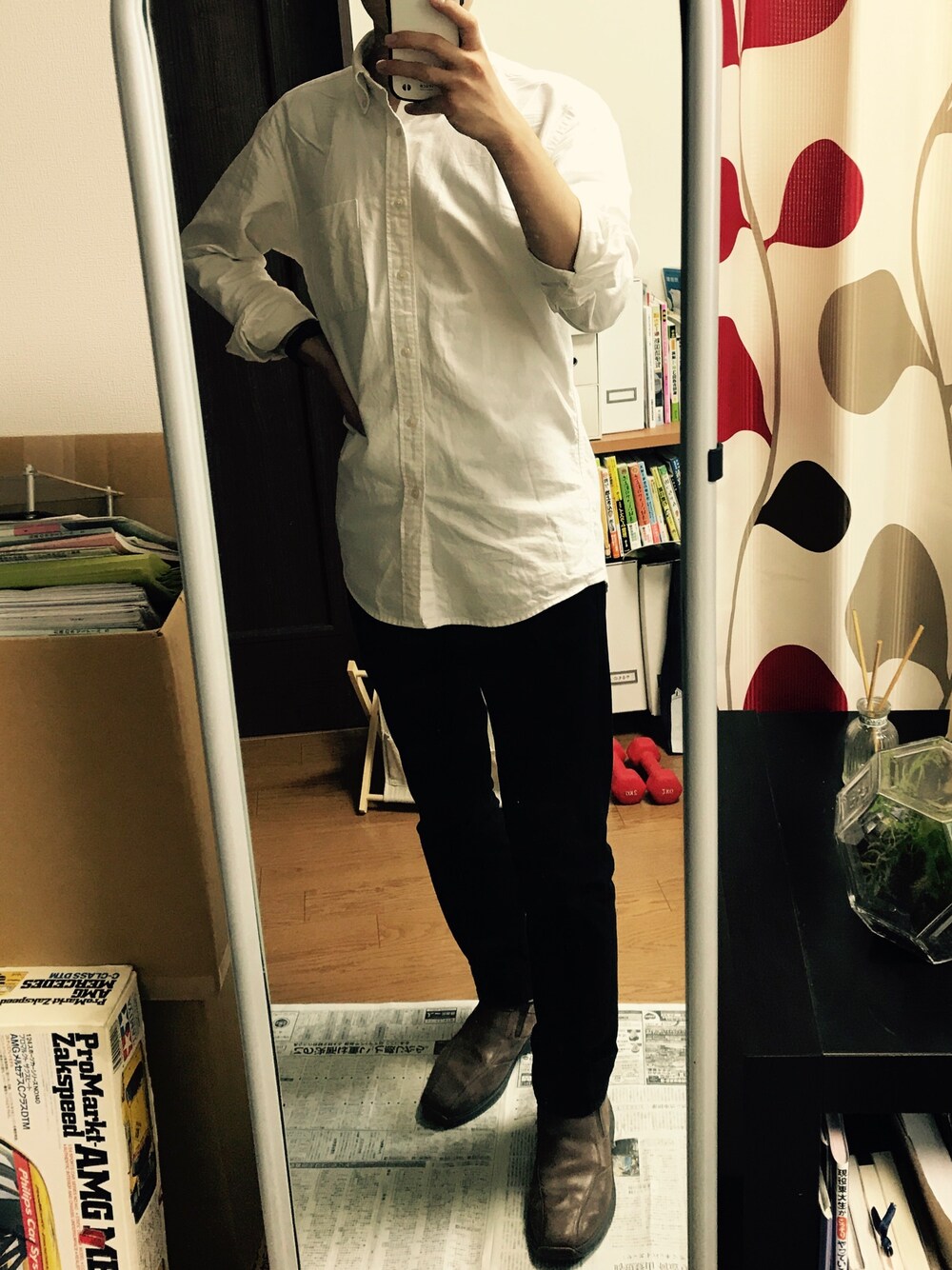 急ぎだったのでシンプルに白シャツ、黒パンで。 最近すごい思うんですけど、ユニクロはいい物を作りますねぇ〜