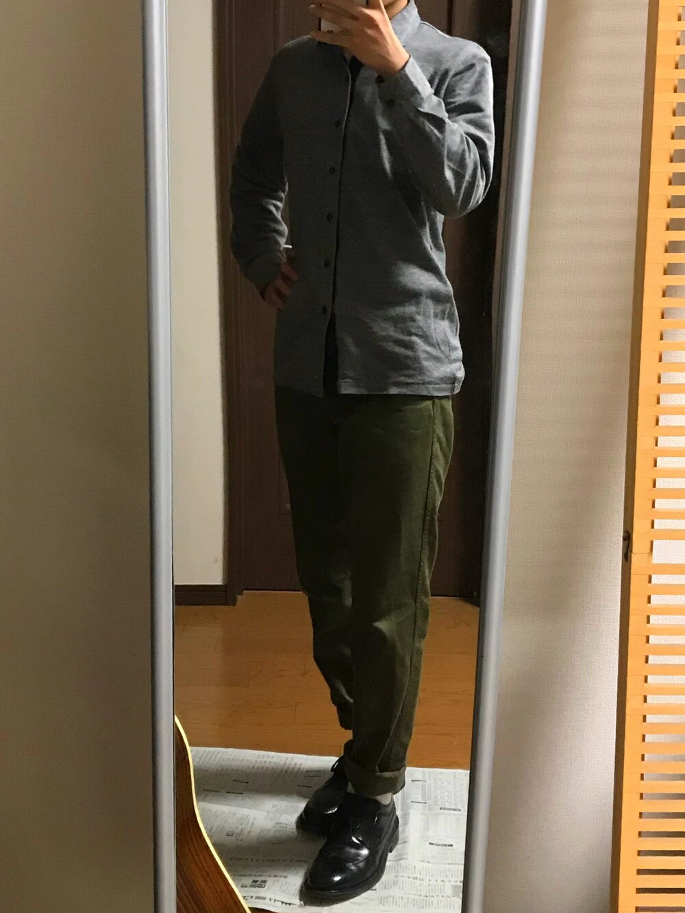 やっぱりグレーとカーキは合いますね。 白ソックスでワンポイント