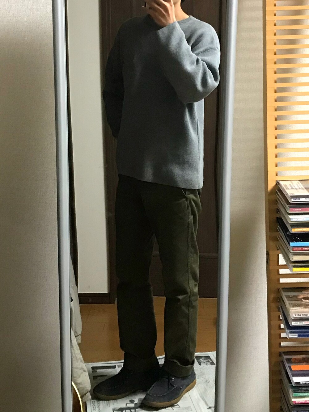 寒いです。 これにライダースやスタジャンを着るスタイルで カーキ色万能すぎる!