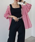 シャツアレンジコーデ シャツ、パンツ、サンダルにピンクが入ったものを使って、ピンク系ワントーンコーデに! シャツを普通には着ず、アレンジしてこなれ感up!◎◎ Tシャツは無地のベーシックなデザインで、着回し抜群! 程よくゆとりもあって、袖は二の腕が隠れる長さなので、とても安心感があります! 生地感もかなり柔らかくて着心地がいいです!! シャツはビッグシルエットなので、Tシャツの上から着て羽織りにしても着ていただけます! アレンジもしやすいデザインで、なんと言ってもカラーが可愛い!! 柄になっていることで、よりオシャレ感がでます! パンツはダボッと履けてスッキリ見えるデザイン!◎◎ サイドのラインが動くと見える作りになってて、なかなか無いデザインなので、とてもこなれ感が出ます! お尻、太ももにゆとりがあるので、私の場合Sサイズでもウエストぴったりで履けます!