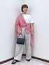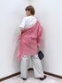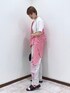 シャツアレンジコーデ シャツ、パンツ、サンダルにピンクが入ったものを使って、ピンク系ワントーンコーデに! シャツを普通には着ず、アレンジしてこなれ感up!◎◎ Tシャツは無地のベーシックなデザインで、着回し抜群! 程よくゆとりもあって、袖は二の腕が隠れる長さなので、とても安心感があります! 生地感もかなり柔らかくて着心地がいいです!! シャツはビッグシルエットなので、Tシャツの上から着て羽織りにしても着ていただけます! アレンジもしやすいデザインで、なんと言ってもカラーが可愛い!! 柄になっていることで、よりオシャレ感がでます! パンツはダボッと履けてスッキリ見えるデザイン!◎◎ サイドのラインが動くと見える作りになってて、なかなか無いデザインなので、とてもこなれ感が出ます! お尻、太ももにゆとりがあるので、私の場合Sサイズでもウエストぴったりで履けます!