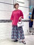 カラー×柄コーデ(ピンク) ピンクのトップスとピンクが入った柄のスカートを合わせた、まとまりのある派手めコーデ! シルバーのバッグやサンダル合わせで、より夏らしい爽やかな雰囲気に!◎◎ Tシャツは、ダメージの入ったデザインで、中にはカラーのタンクトップやシアーインナーを入れると、ダメージの部分から見えるので、安心感もありつつ、よりオシャレに着ていただけます! ダボッとしたシルエットで、結構薄手な素材感なので、真夏も涼しく着ていただけます! スカートは切り替えがあり、ウエスト周りがスッキリの裾がボリュームの出るデザインです! インで着るとスッキリ、OUTで着るとダボダボっとしたシルエットになります! 割としっかり目の生地感なので、透けずに安心して着ていただけます! なかなかないデザインなので、履くだけでオシャレに!◎◎
