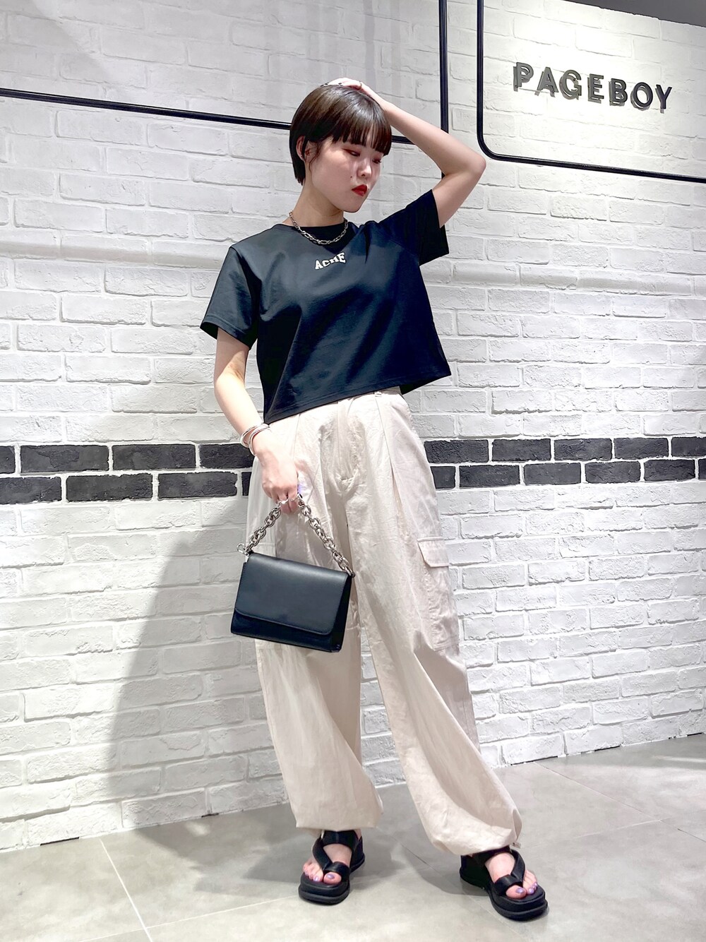 カジュアルモノトーンコーデ 全体的に白黒でまとめて、シンプルに可愛いカジュアルストリートコーデに! ショート丈トップス×カーゴパンツの合わせがトレンド感抜群◎◎