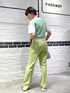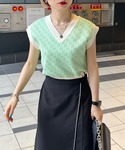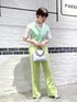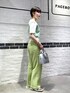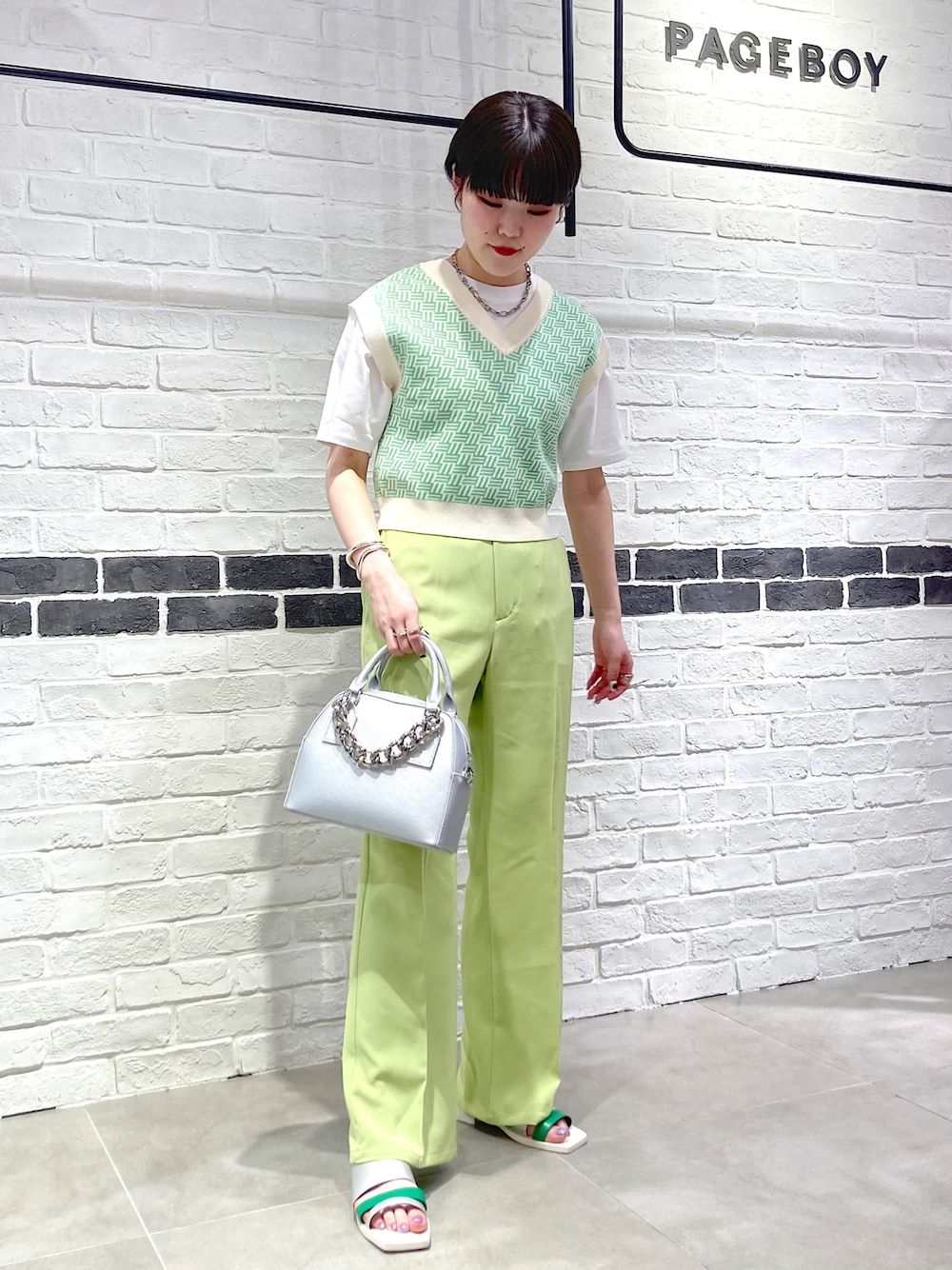 ワントーンコーデ グリーン系のコーデに、小物はシルバーでまとめて、夏っぽい爽やかな印象に! ショート丈のベストを合わせているので、着痩せ・脚長効果抜群です!◎◎