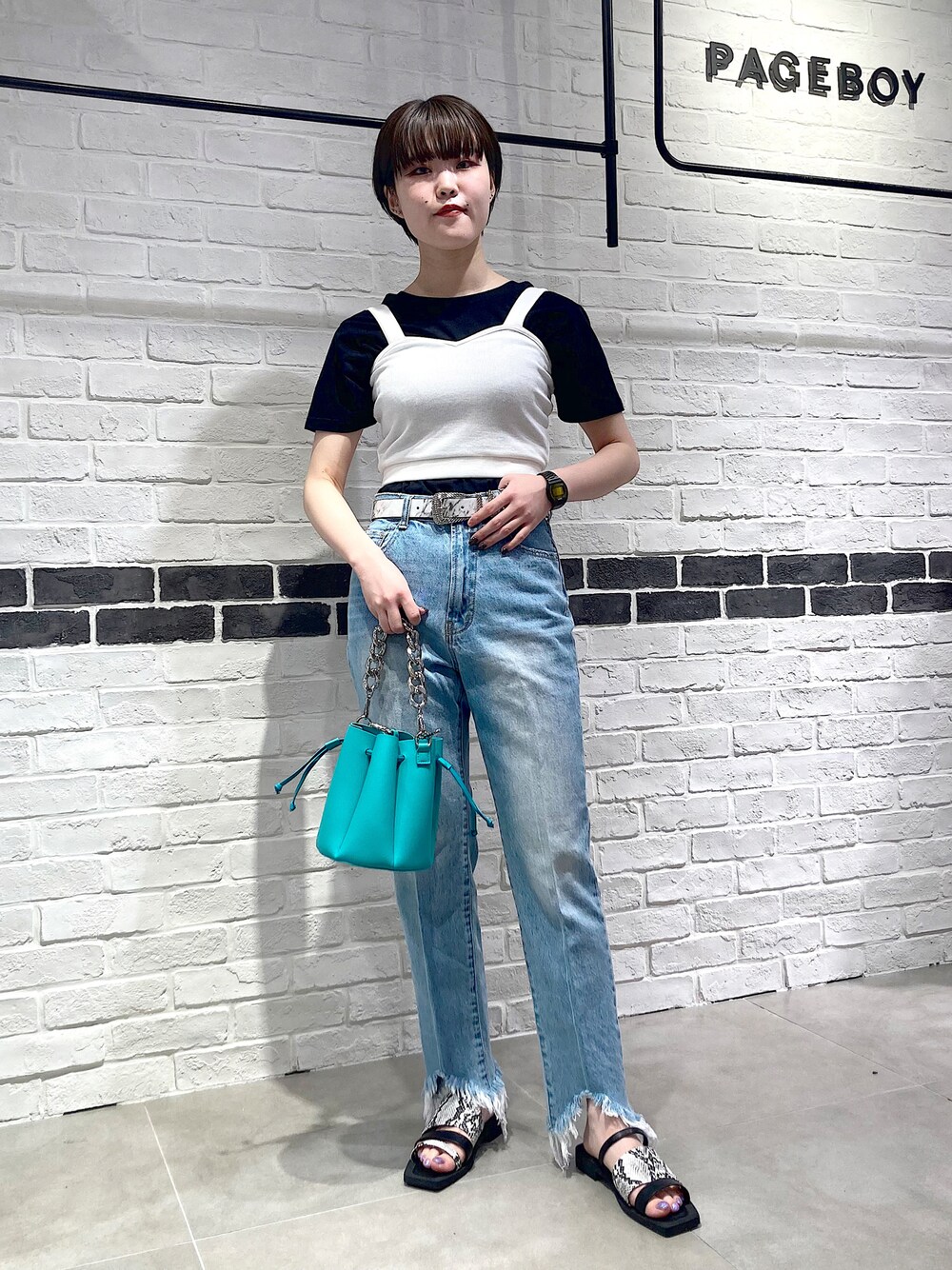 yamaのタンクトップ「リブショートタンク」を使ったコーディネート