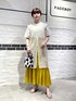 リゾートコーデ イエロー×ホワイトの明るめカラーでまとめて、夏の爽やかなリゾートコーデに! 可愛らしいスカートも、ロングベストを合わせて大人っぽくなります!