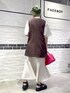 ワンピースコーデ シンプルなマーメイドワンピに、ジレを合わせてトレンド感をプラス! 小物をカラーにすることで、ベーシックなカラーがより華やかな印象に!◎◎