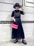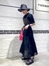 モノトーンコーデ 小物や素材を使って、モノトーンでも夏っぽいコーデに! 差し色でピンクのバッグをもって、重たすぎないオールブラックにしてみました!